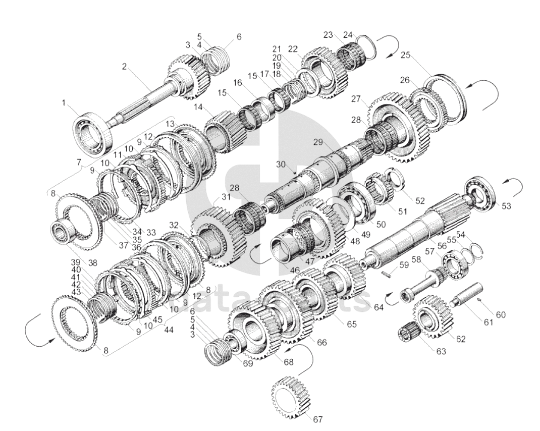 Валы и шестерни коробки передач ЯМЗ-7511.10