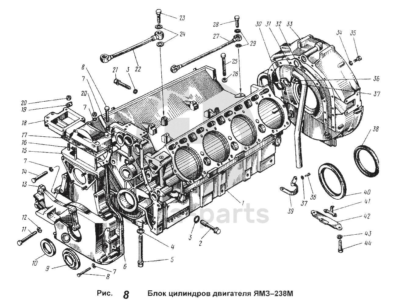 Блок цилиндров двигателя ЯМЗ-238М Общий (см. мод-ции)