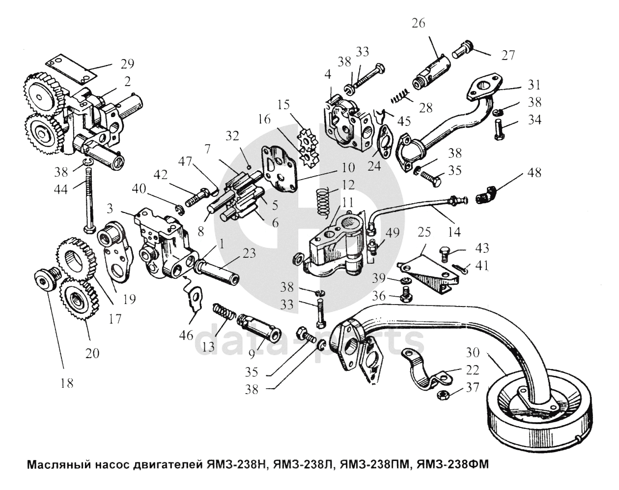 Масляный насос двигателей ЯМЗ-238Н, ЯМЗ-238Л, ЯМЗ-238ПМ, ЯМЗ-238ФМ Общий (см. мод-ции)