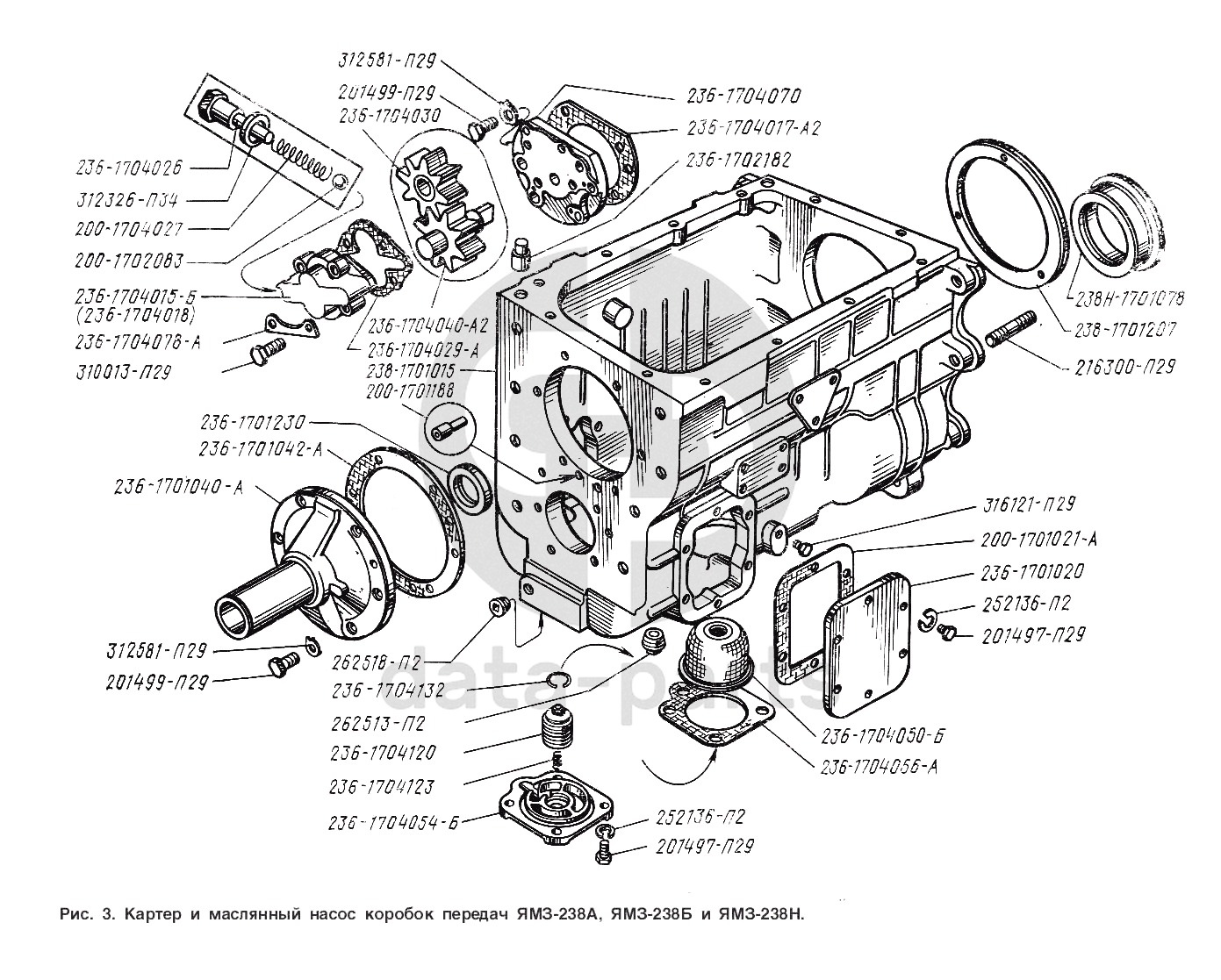 Картер и масляный насос коробок передач ЯМЗ-238А, ЯМЗ-238Б и ЯМЗ-238Н Общий (см. мод-ции)