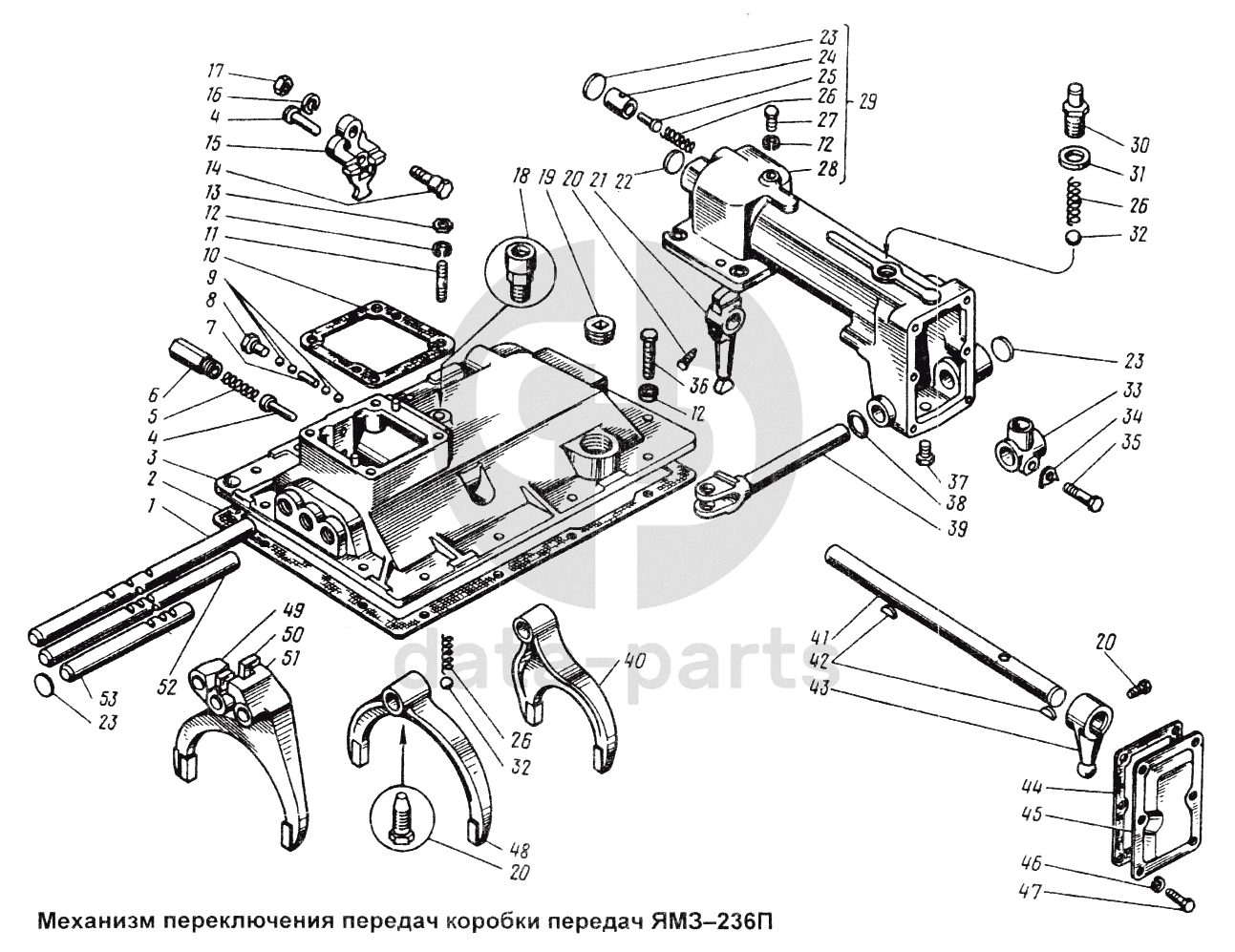 Механизм переключения передач коробки передач ЯМЗ-236П Общий (см. мод-ции)