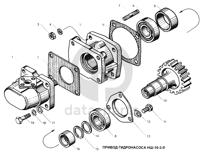 Привод гидронасоса НШ-10-3-Л ЯМЗ-236 ДК и ЯМЗ 238 АК
