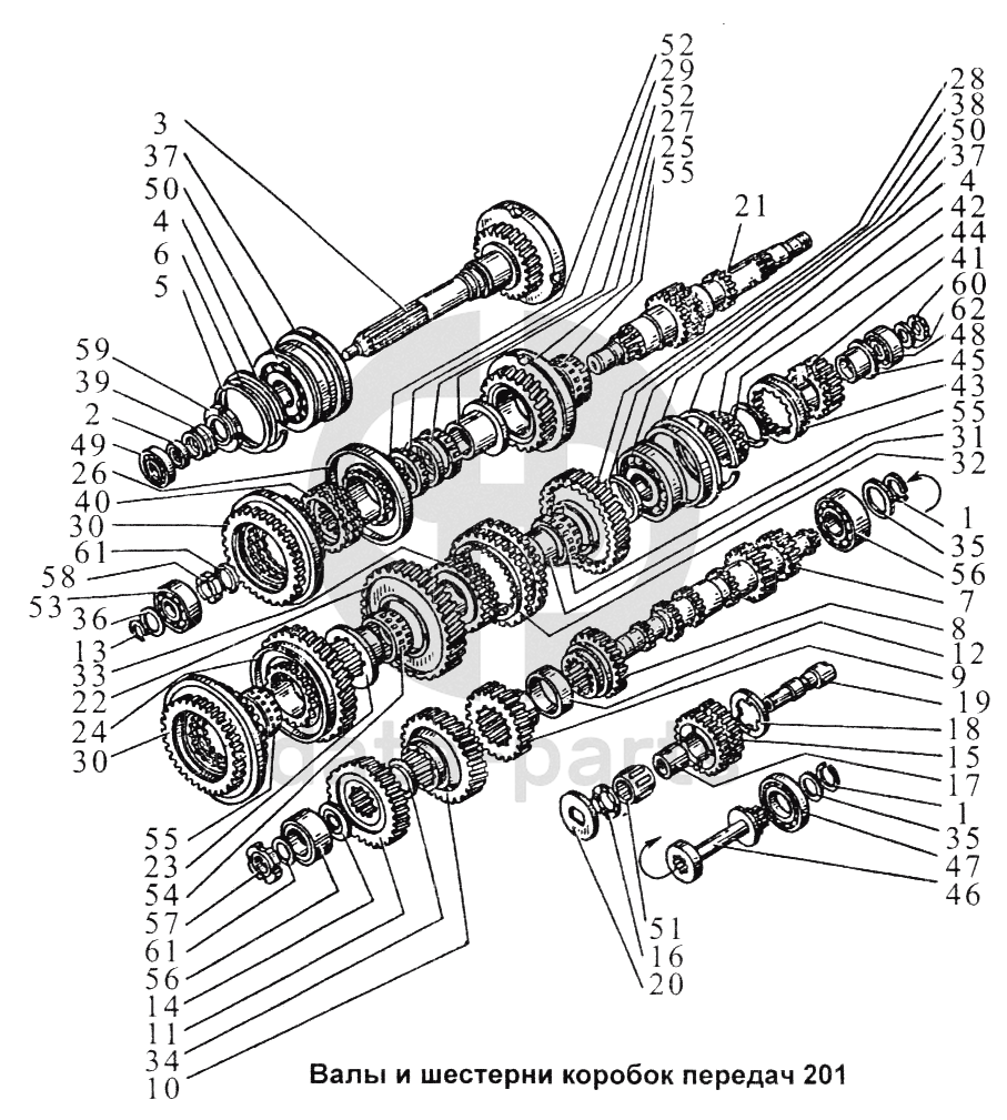 Валы и шестерни коробок передач 201 ЯМЗ-236 М