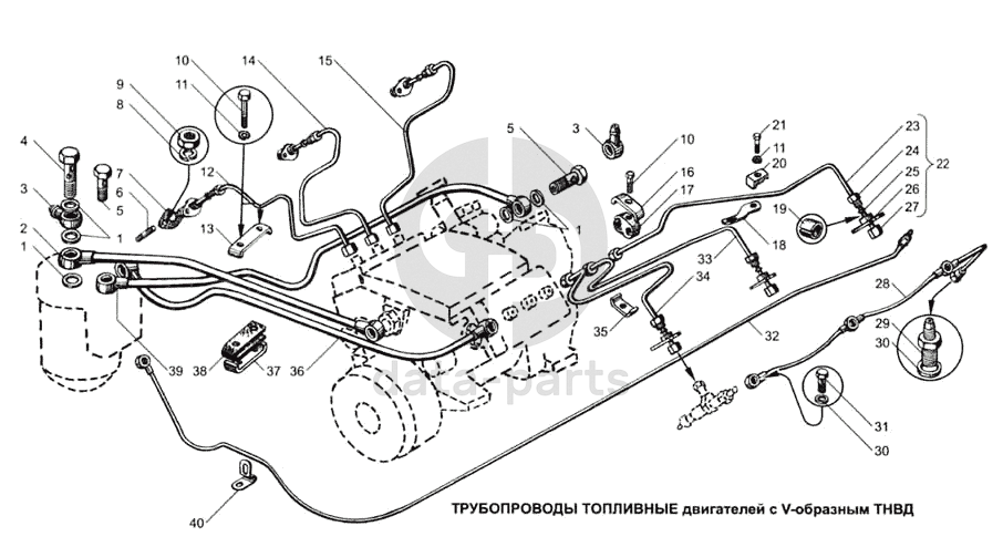 Трубопроводы топливные двигателей с V-образным ТНВД ЯМЗ-236 НЕ, 236 БЕ, 7601.10