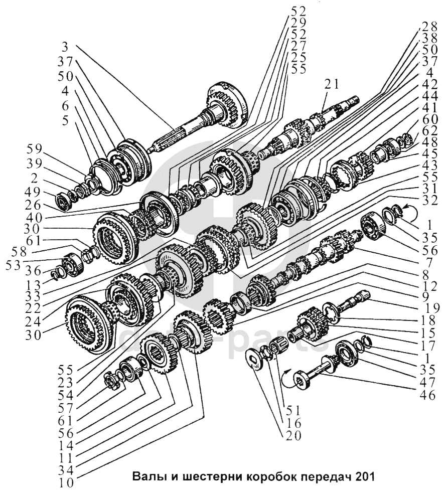 Валы и шестерни коробок передач 201 ЯМЗ-238 АМ