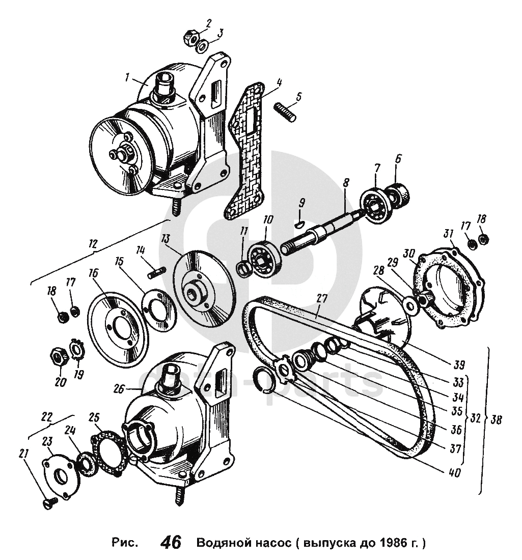 Водяной насос (выпуска 1986 г.) ЯМЗ-238 ГМ