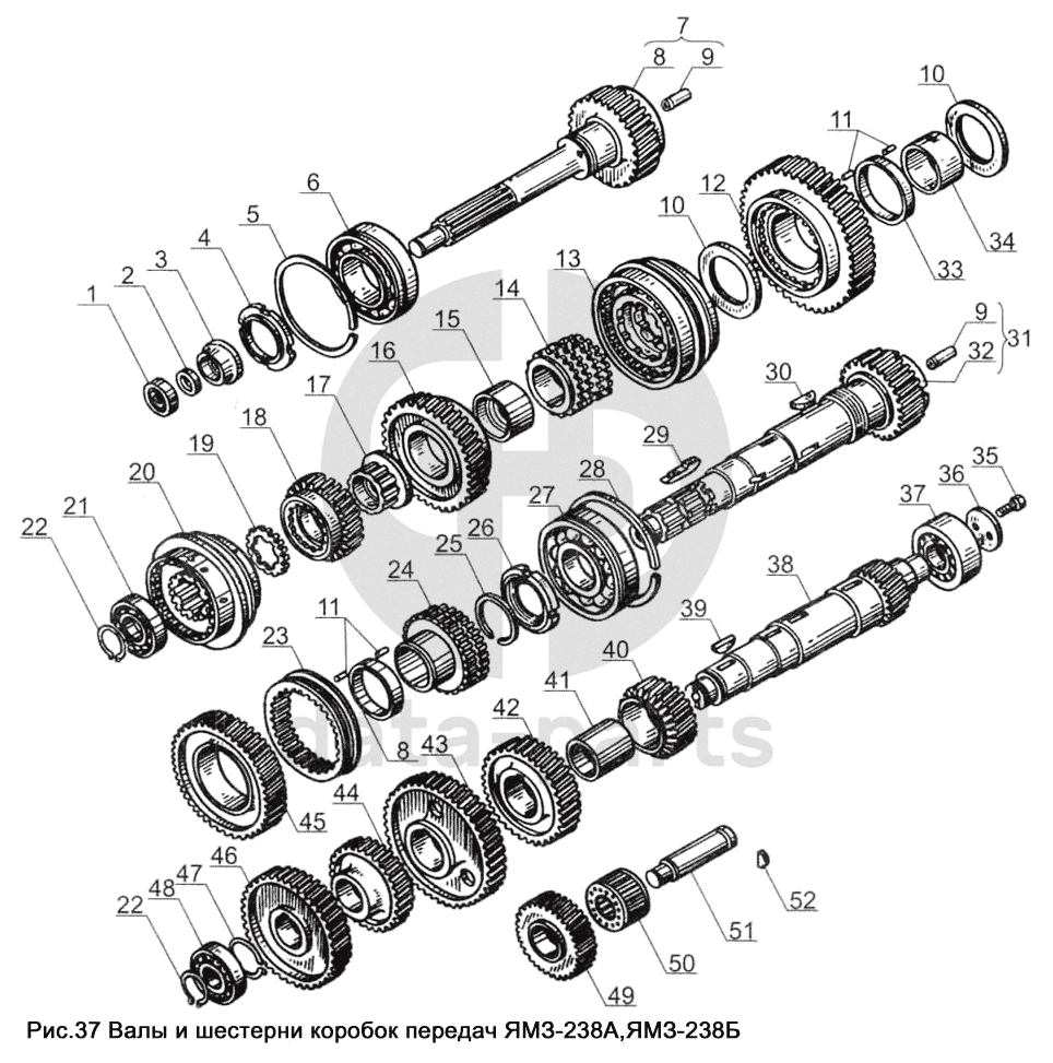 Валы и шестеренки коробок передач ЯМЗ-238А, ЯМЗ-238Б ЯМЗ-238Д и Б