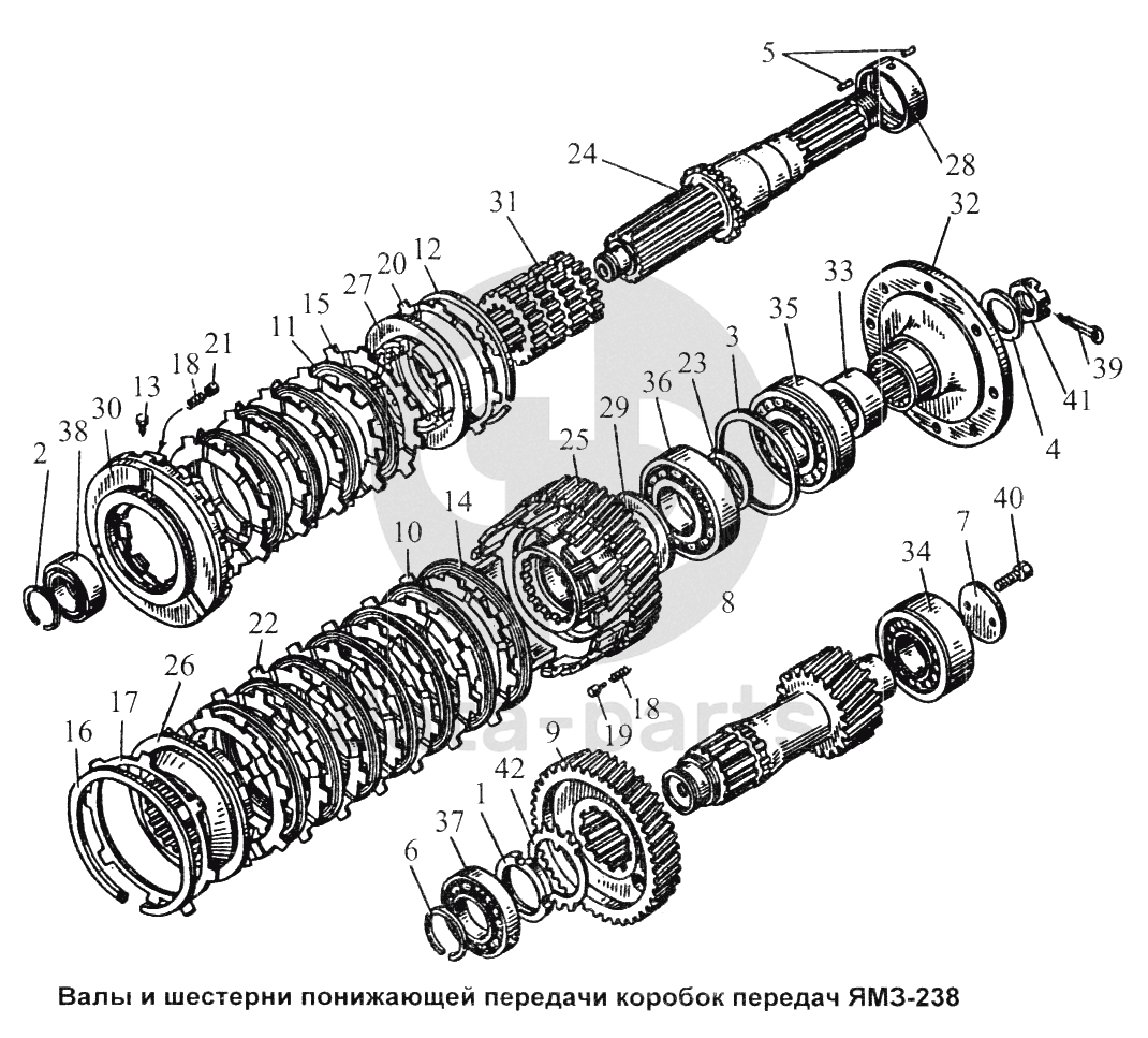 Валы и шестерни понижающей передачи коробок передач ЯМЗ-238 ЯМЗ-238 ИМ