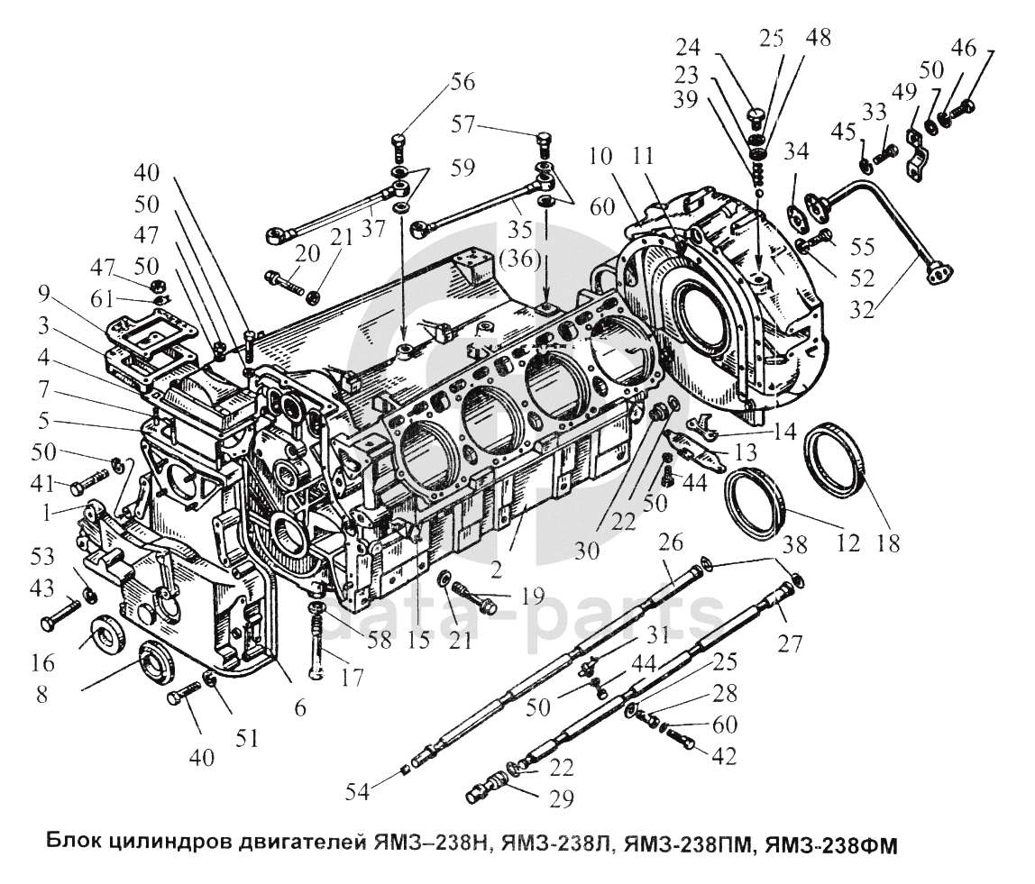 Блок цилиндров двигателей ЯМЗ-238Н, ЯМЗ-238Л, ЯМЗ-238ПМ, ЯМЗ-238ФМ ЯМЗ-238 Н