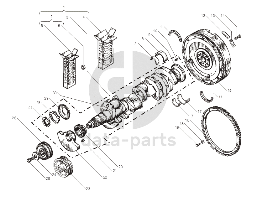 Вал коленчатый и маховик ЯМЗ-238НД3, НД4, НД5