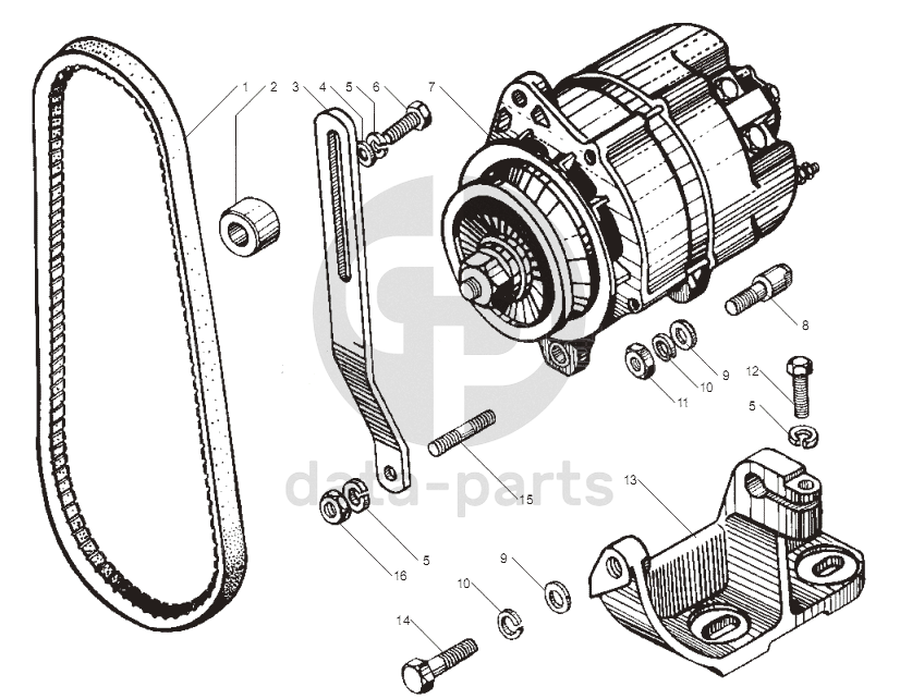 Генератор в сборе, его крепление и привод ЯМЗ-238НД3, НД4, НД5