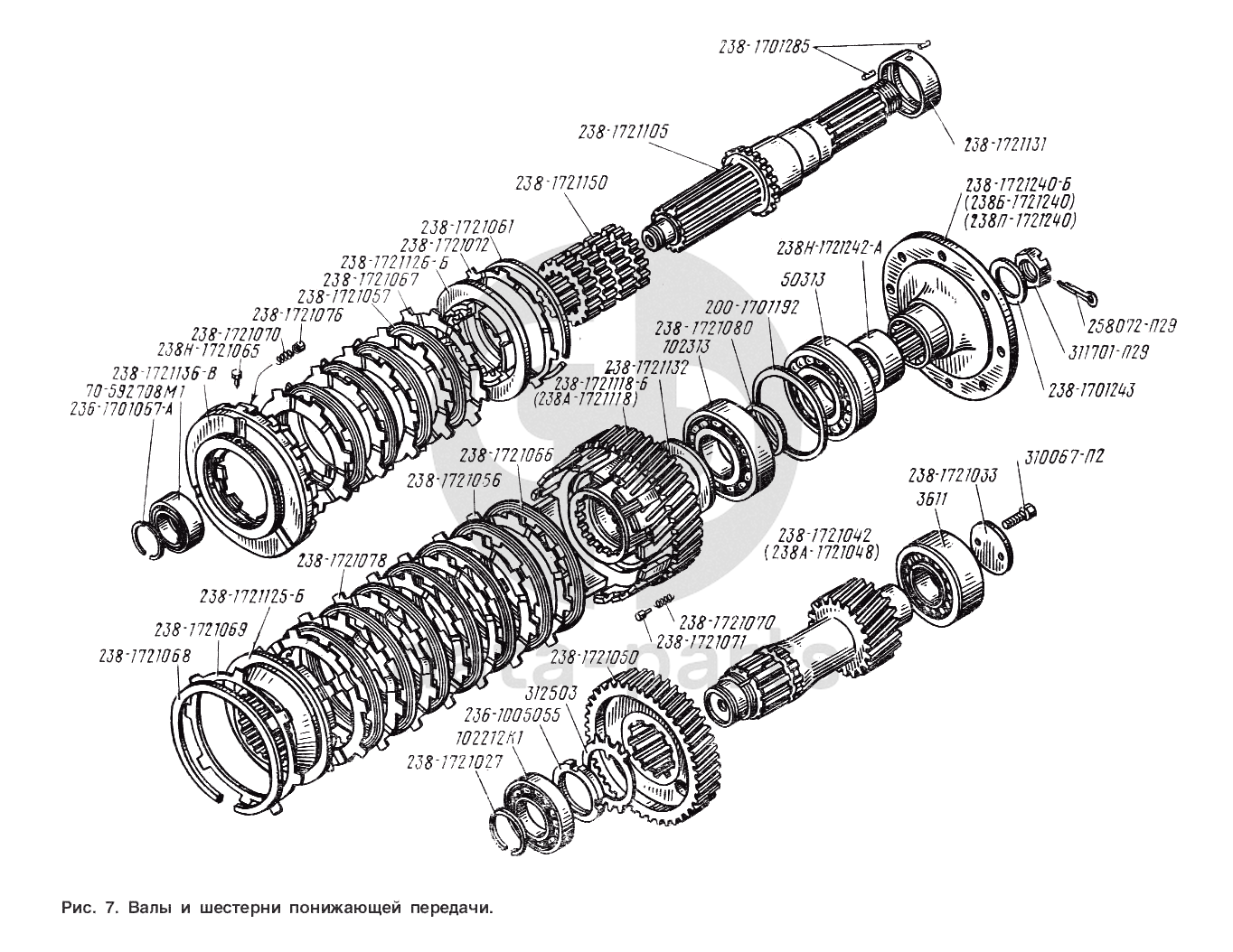 Валы и шестерни понижающей передачи ЯМЗ-238 НД