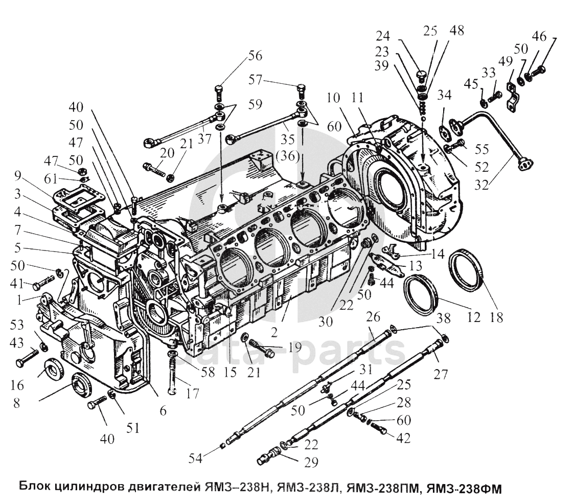 Блок цилиндров двигателей ЯМЗ-238Н, ЯМЗ-238Л, ЯМЗ-238ПМ, ЯМЗ-238ФМ ЯМЗ-238 ПМ и 238 ФМ