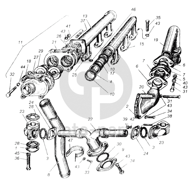 Трубы водяные двигателя ЯМЗ-240 ЯМЗ-240, 240Б, 240Н, 240П