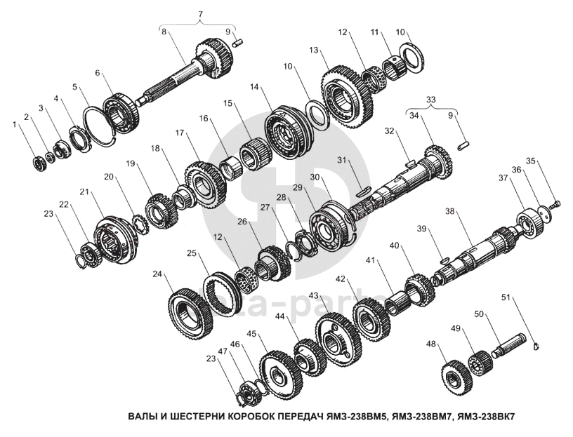 Валы и шестерни коробки передач ЯМЗ-2381-06 ЯМЗ-6561.10 (Евро 3)