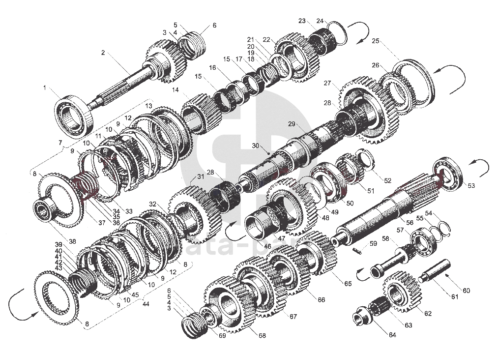 Валы и шестерни коробки передач ЯМЗ-239.17-22 ЯМЗ-6562.10 (Евро 3)