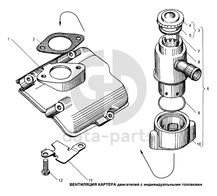 Вентиляция картера (для двигателей с индивидуальными головками цилиндров) ЯМЗ-6563.10 (Евро 3)