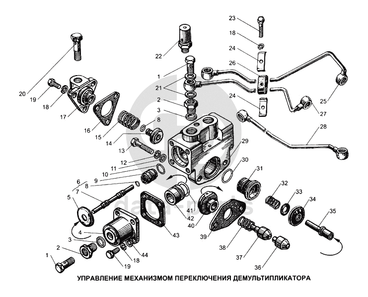 Управление механизмом переключения демультипликатора коробки передач ЯМЗ-2381-06 ЯМЗ-6563.10 (Евро 3)