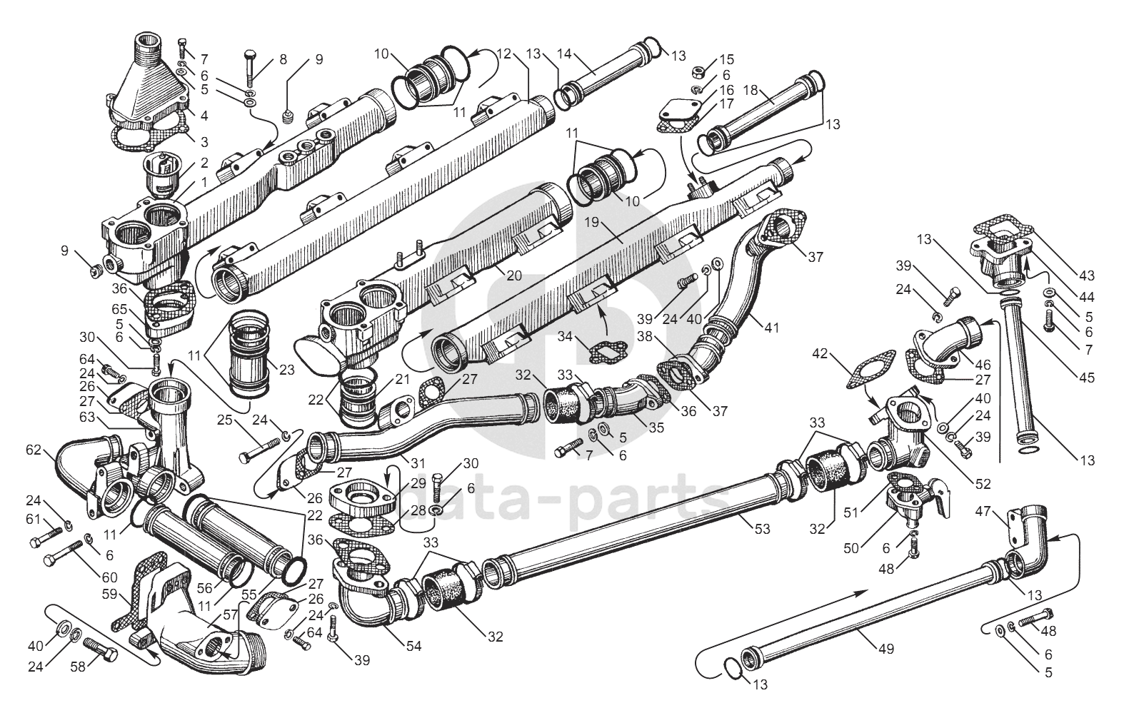 Трубы и термостаты системы охлаждения двигателей ЯМЗ-8502.10, ЯМЗ-8502.10-08, ЯМЗ-8503.10 ЯМЗ-850.10